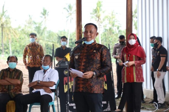 PALAS – Bupati Lampung Selatan, H. Nanang Ermanto bersama Ketua Komisi IV DPR RI, Sudin, SE lakukan Penanaman Perdana Komoditi Pisang Barangan Merah di Kebun Nursery PT Talun Jaya Abadi Desa Tanjung Sari Kecamatan Palas, Jum’at(8/1/2021).