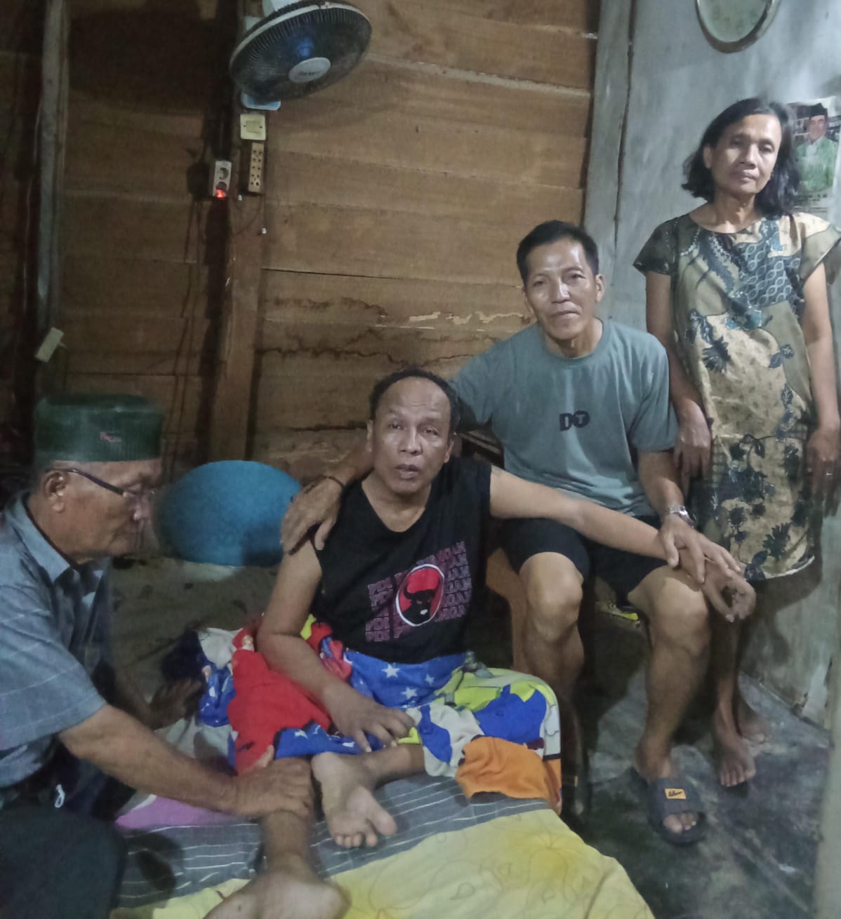 “Kata dokter, kolesterol dan Darah suaminya tinggi, jadi kaki dan tangan kaku dan sulit bergerak,” jelas istri Sidik lagi. Dan, lanjut Istri Sidik, karena tidak ada buaya lagi. Bahkan untuk hidup pun serba sulit, akhirnya suami saya pun pasrah berbaring diatas kasur ini saja. “Jadi, Pak bantu saya, gimana caranya bisa dapatkan Kursi roda buat suami saya, Pak. Syukur syukur, bisa buat berobat suami,” keluhnya. Dan tak tahan, melihat kondisi Sidik dan kondisi istrinya yang mengeluarkan air mata terus menerus, tim media ini akhirnya berlalu dari kediaman rumah itu. Meski begitu, sebelum meninggalkan rumah itu, tim media ini berjanji akan membantu wujudkan keinginan untuk dapatkan Kursi roda. “Ya, semoga secepatnya, ad dermawan yang akan bantu harapan ibu dan keluarga disini. Saya pastikan, dermawan itu akan segera datang dengan membawa kursi roda. Jadi, ibu bersabar, ya. Saya pastikan akan dapat bantuan sebuah kursi roda. Saya janji gak lama lama, mudah mudahan besok atau lusa sudah ada kursi rodanya,” pungkas asof, seraya berpesan agar kursi roda yang akan segera diterima itu dapat digunakan sebaik mungkin. Hari pun semakin malam, tim media ini pun minta izin untuk kembali ke kota Kalianda, tepat pukul 21.00 WIB.