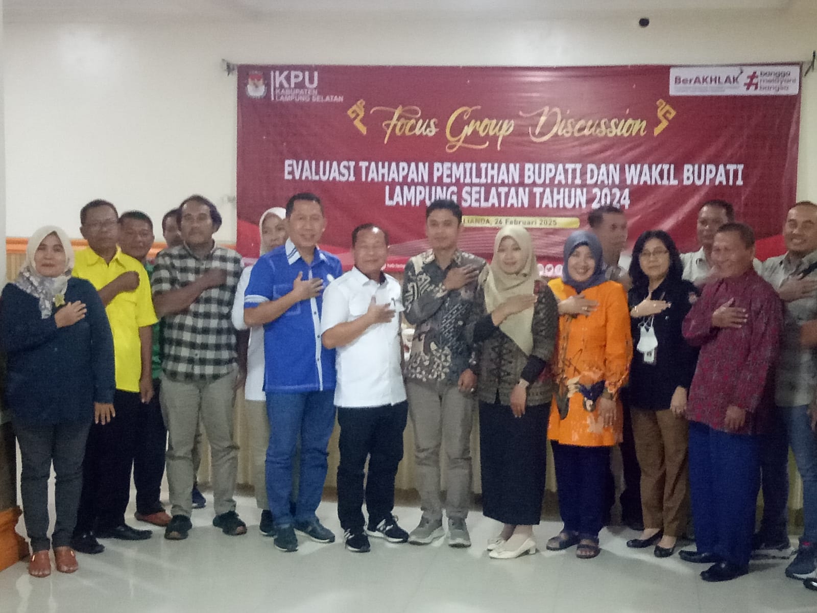 KALIANDA- KPU Lampung Selatan ucapkan selamat kepada Bupati Lamsel Radityo Egi Pratama karena telah dilantik oleh Presiden RI Prabowo di Jakarta. KPU berharap Bupati Lamsel mampu wujudkan Lamsel lebih maju, makmur, dan sejahtera. Hal ini diungkapkan KPU Lamsel, saat menggelar Evaluasi tahapan Pemilihan dan wakil bupati Lampung Selatan tahun 2024 di Desas Cafe, Rabu (25-2-2025).