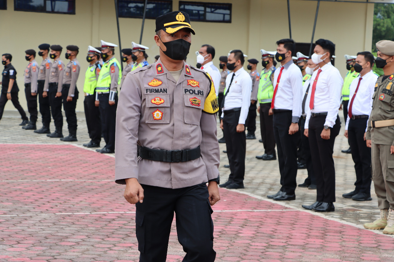 Lamsel-Wakapolres Lampung Selatan Kompol Firman Sontama, S.Sos memimpin Apel Kesiapana Operasi Keselamatan 2022, Senin (1/3/2022) dihalaman Mapolres setempat.